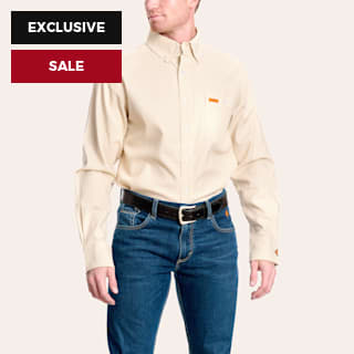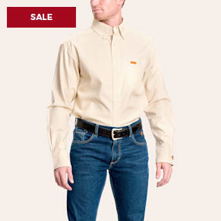Forge Men's White & Tan Print Flame Resistant Work Shirt