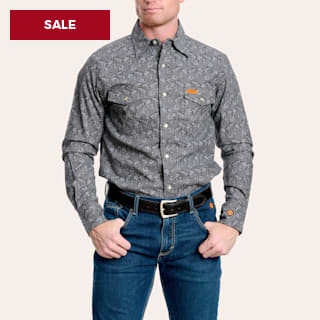 Wrangler Men's FR Cement & Gray Paisley Western Work Shirt