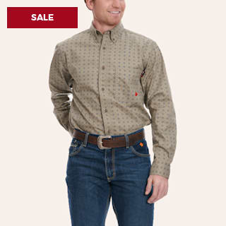 Wrangler Men's FR Khaki Geo Print Western Work Shirt - Big & Tall Sizes