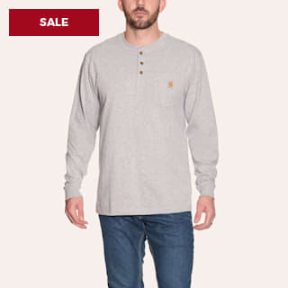 Carhartt Men's Heather Gray Loose Fit Heavyweight Long Sleeve Henley T-Shirt