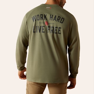 Ariat Men's Olive FR Work Hard Live Free Long Sleeve Graphic T-Shirt