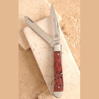 Circle SH Cutlery Acrylic Floral Tooled Leather Print Trapper Knife