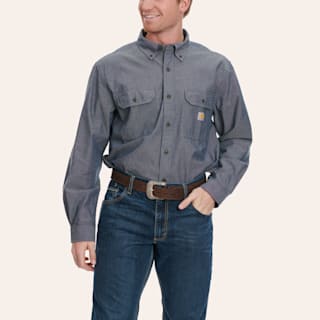 Carhartt Men's Denim Blue Mid-weight Chambray Loose FitLong Sleeve Work Shirt