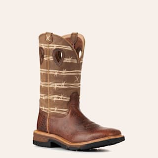 Twisted X Men's Rustic Brown and Tan Barbed Wire CellStretch Square Toe Work Boots