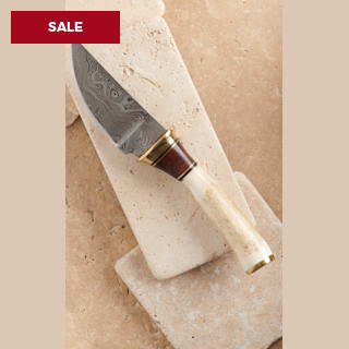Circle SH Cutlery Damascus Blade and Stag Bone Handle Knife with Leather Sheath