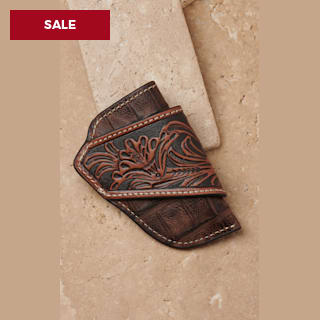 3D Belt Co Brown Crocodile Print and Floral Tooled Leather Side Draw Knife Sheath