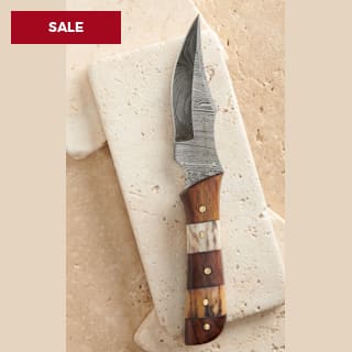 Circle SH Cutlery Stag Horn and Wood with Damascus Steel Mini Hunter Knife & Leather Sheath