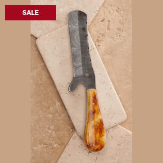 Circle SH Cutlery Damascus Blade and Burnt Bone Handle Castrations Knife with Leather Sheath