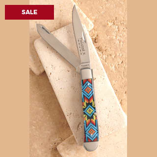 Circle SH Cutlery Beaded Aztec Resin Handle Trapper Knife