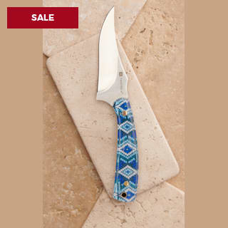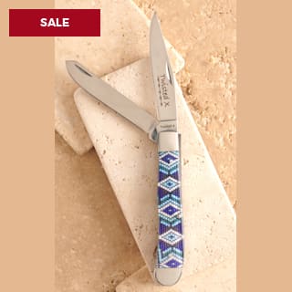 Twisted X Acrylic Blue Beaded Aztec Print Large Trapper Knife
