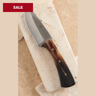 Twisted X Steel Blade and Ox Horn Handle Knife with Leather Sheath