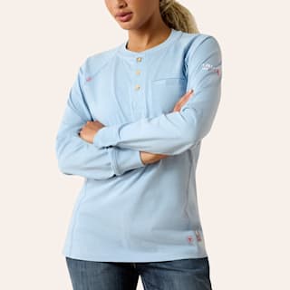Ariat Women’s Air Henley Heather Blue FR Long Sleeve Top