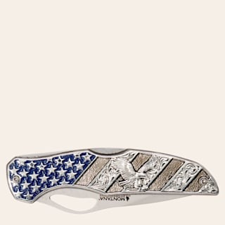 Montana Silversmiths Silver & Blue Stars & Stripes Eagle Folding Knife