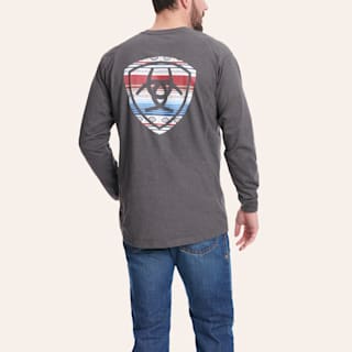 Ariat Men's Air Crew Charcoal & Aztec Logo Shield Gray FR Work Shirt