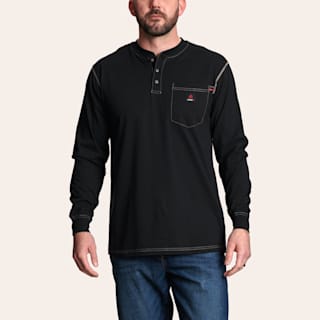 Forge Men's FR Black Contrast Stitch Light Weight Henley Shirt