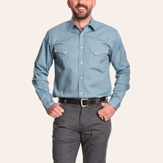 Forge Men's Light Blue Geo Print Flame Resistant Long Sleeve Shirt
