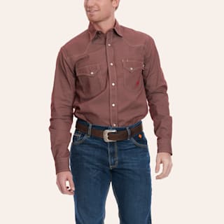 Forge Men's Wine & Tan Geo Print Long Sleeve FR Work Shirt