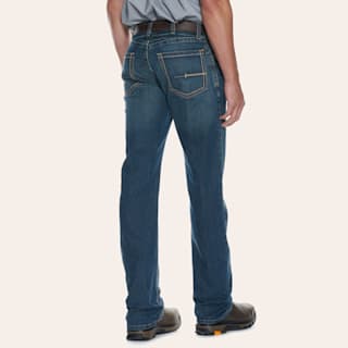Ariat Men's Rebar Stone Wash Open Pocket Low Rise Boot Cut Stretch Work Jeans