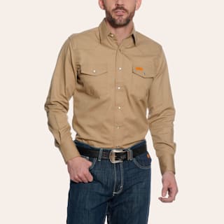 Wrangler FR Khaki Long Sleeve Western Snap Workshirt - Big & Tall