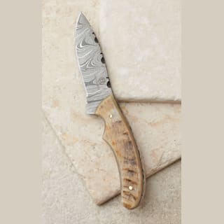 Circle SH Cutlery Damascus Straight Blade 6 3/4" Ram Horn Handle Knife & Sheath