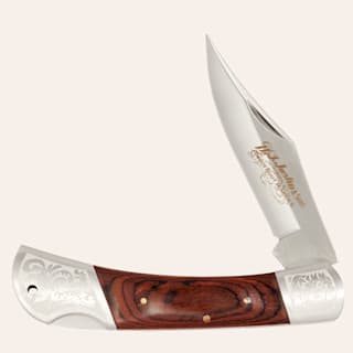 Justin Silver & Brown Wood Handle Etched Folding Knife
