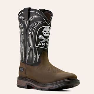 Ariat Men's Workhog XT Dark Brown & Black Bolt Skull Waterproof Wide Square Toe Work Boots