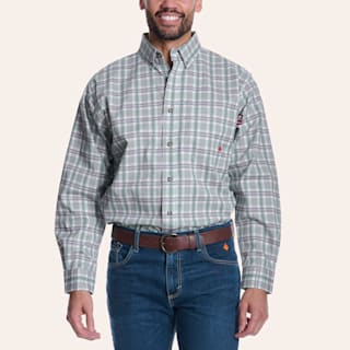 Forge Men's Slate Green Plaid Print FR Long Sleeve Shirt