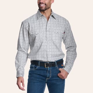 Forge Men's White & Gray Geo Print FR Long Sleeve Pearl Snap Western Shirt